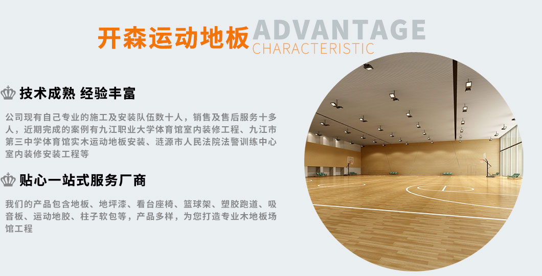 九江開森地板有限公司是集運(yùn)動(dòng)木地板生產(chǎn)、安裝與銷售一體的廠家,專業(yè)化的技術(shù)隊(duì)伍,國(guó)際先進(jìn)的施工設(shè)備,我們的管理層擁有多年體育場(chǎng)館建造經(jīng)驗(yàn),在業(yè)界獲得良好聲譽(yù)及甲方的好評(píng)。